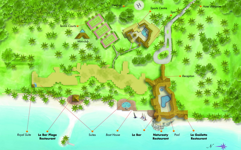 and the turquoise Grande Baie lagoon beyond. Staff outnumber