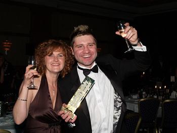 (above) Helen Doyle and Danny Waine toast the company's achievement shortly after receiving the award.